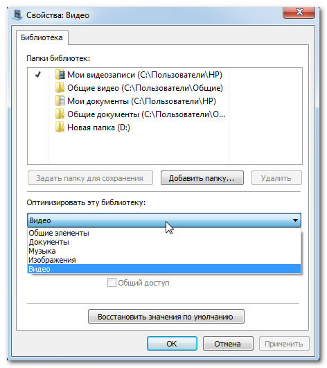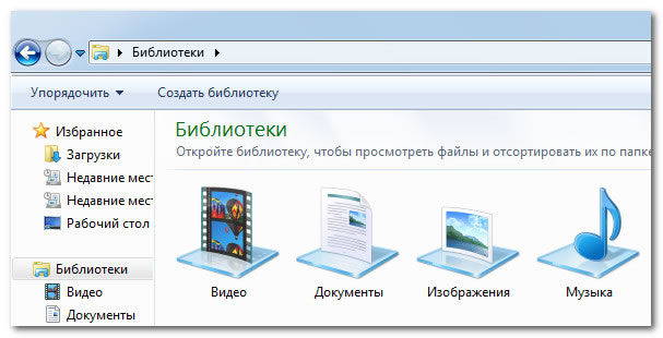 За замовчуванням в Windows 7 є чотири стандартні бібліотеки: