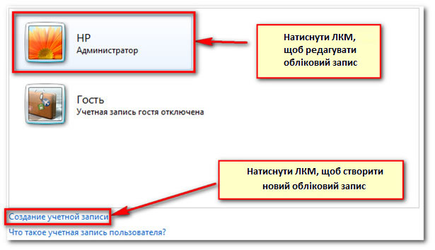 У Windows 7 кожна людина, яка користується вашим комп'ютером, може мати свій обліковий запис. Це дозволяє кожному мати власні налаштування і встановити батьківський контроль, щоб обмежувати доступ до ігор або програм, до яких ваша дитина (інший користувач, з обмеженими правами, НЕ адміністратор) має доступ.