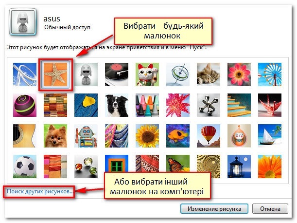 Щоб змінити малюнок облікового запису:
