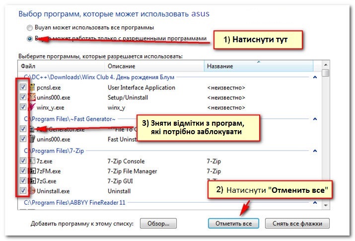 Щоб заблокувати певні програми: