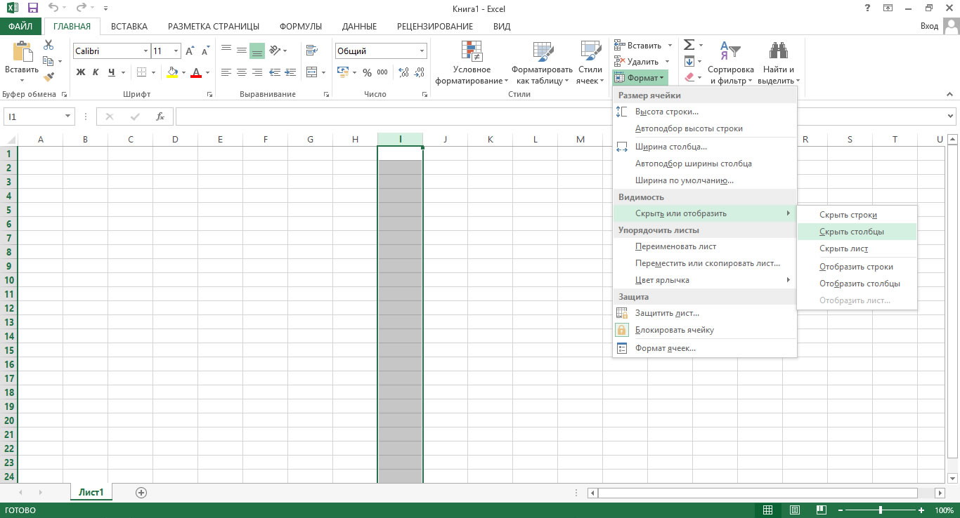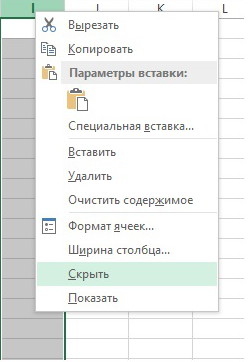 Щоб приховати стовпець можна пересунути праву межу заголовку стовпця за ліву.