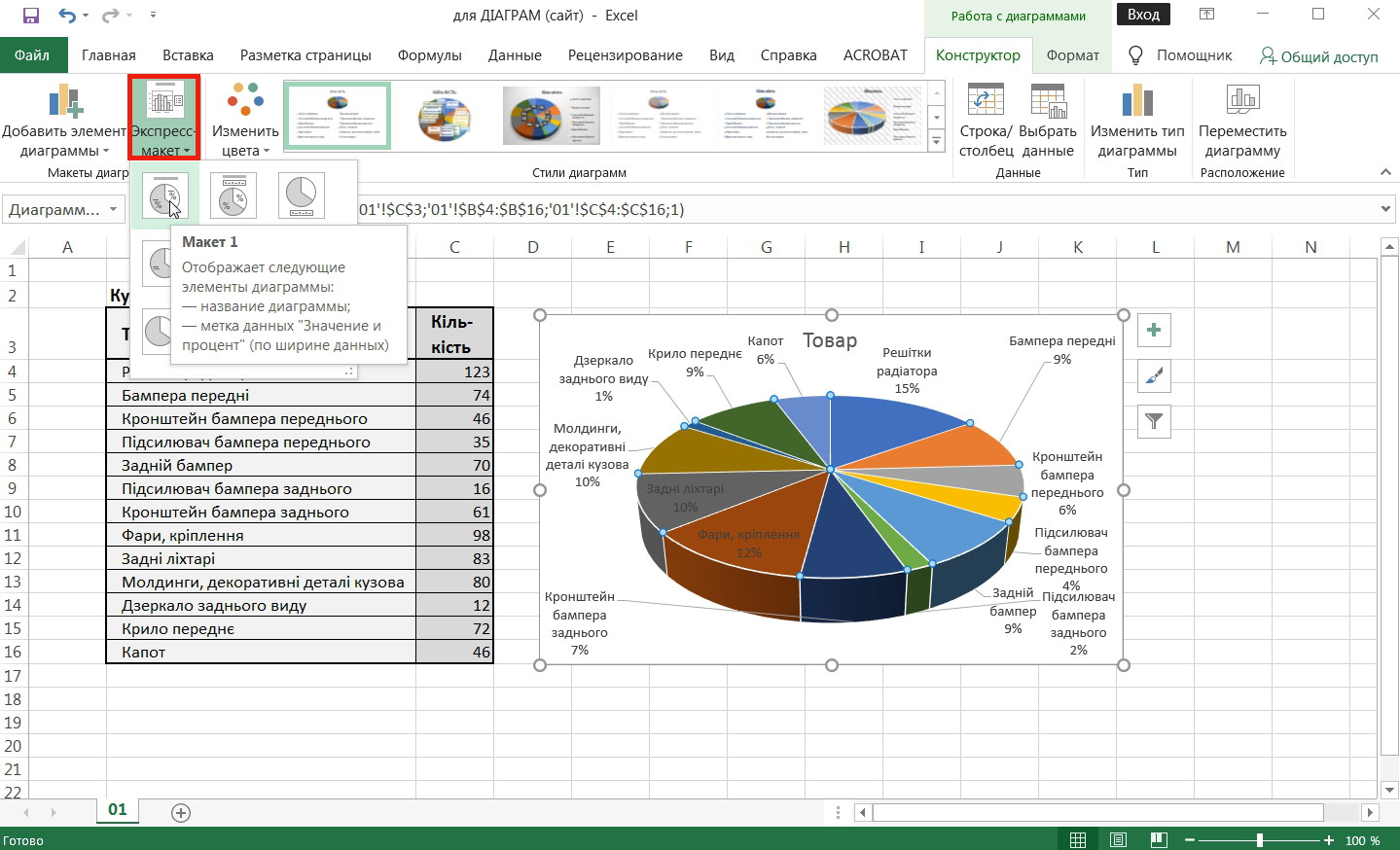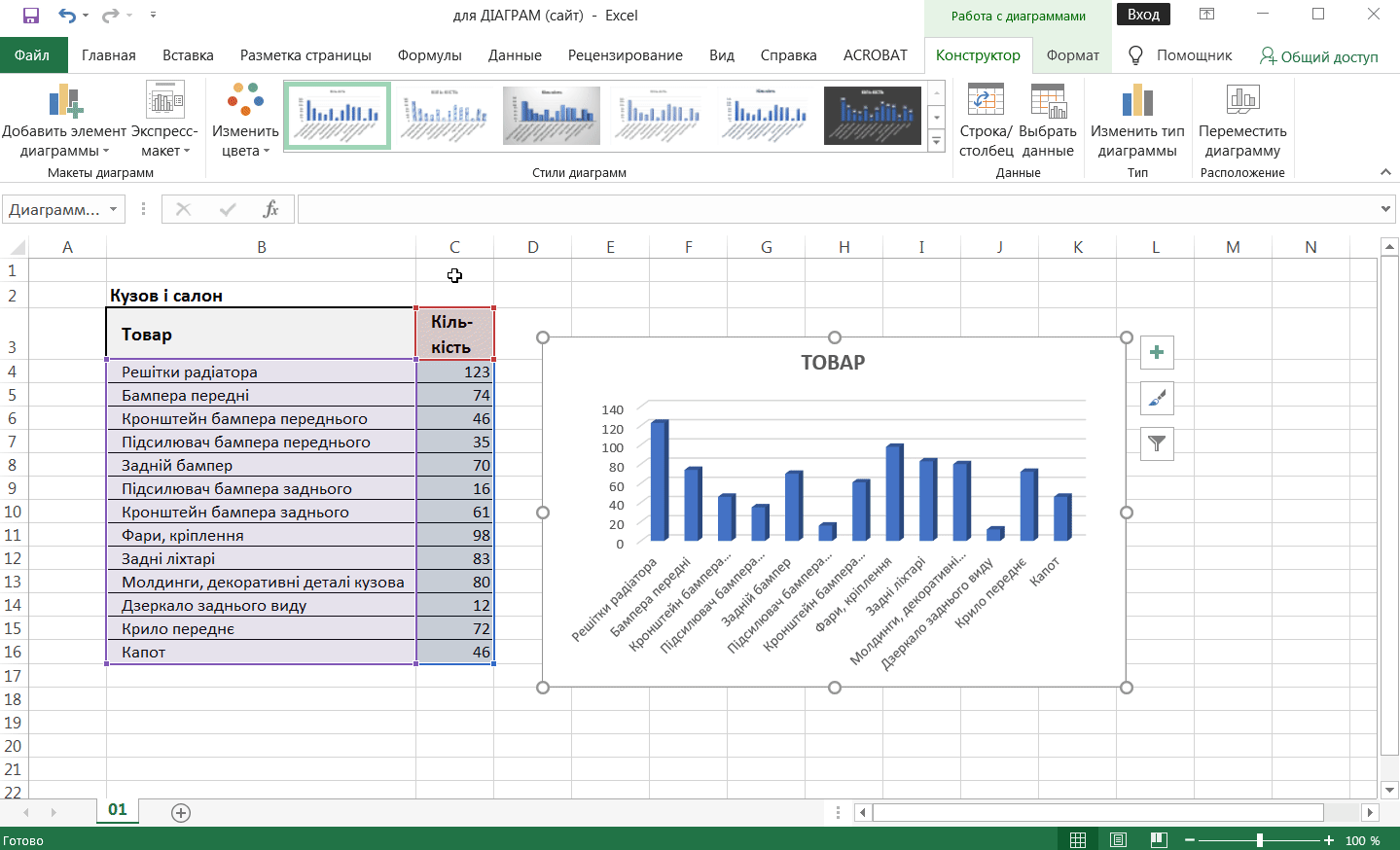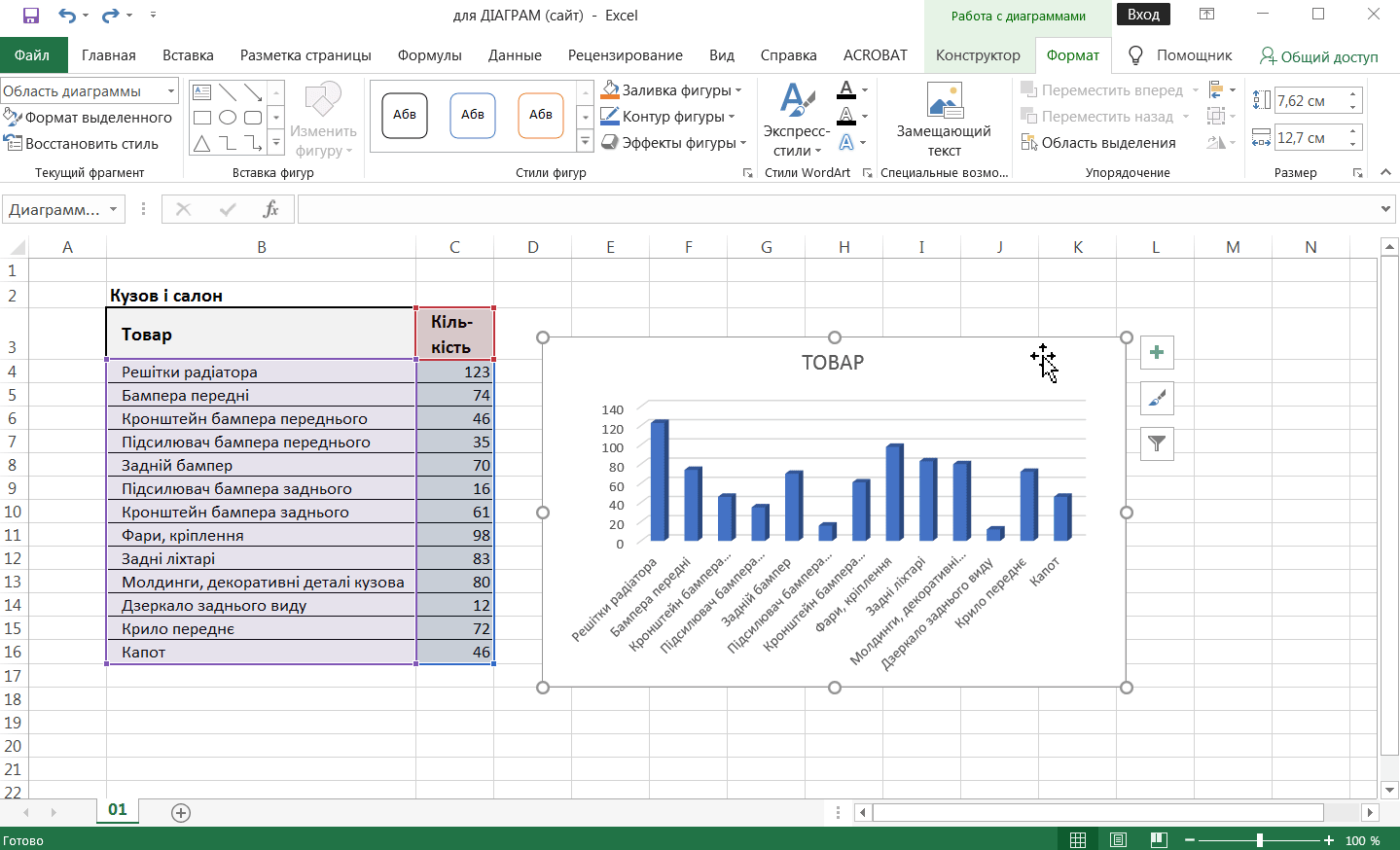 Завдання 3. Побудова та форматування діаграм під час роботи з електронними таблицями