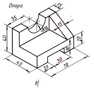 Завдання 1.За аксонометричною проекцією (для завантаження натиснути ТУТ), побудувати креслення деталі в необхідній кількості видів (в масштабі 1: 1). Нанести розміри.